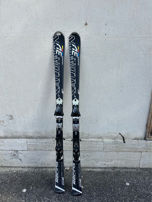 Attrezzatura da scialpinismo usata completa: sci, scarponi, attacchi e bacchette per salite...