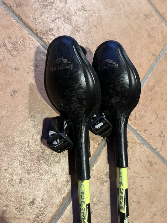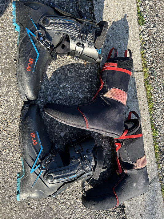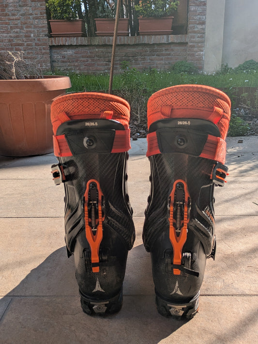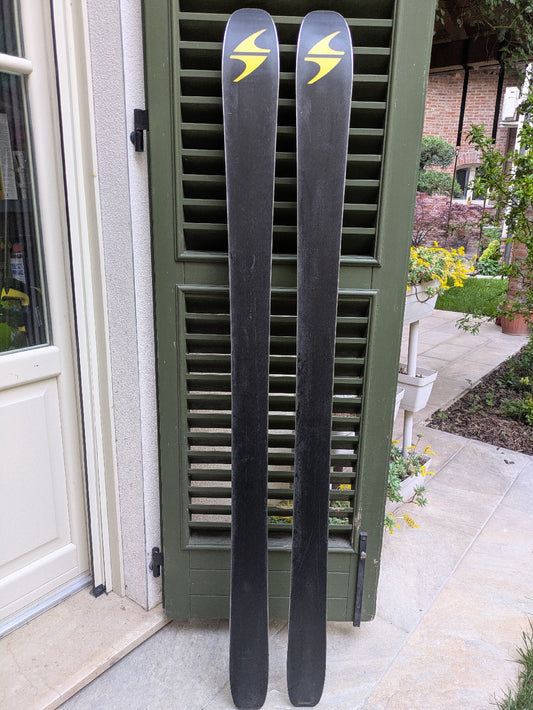 Attrezzatura da scialpinismo usata completa: sci, scarponi, attacchi e bacchette per salite...